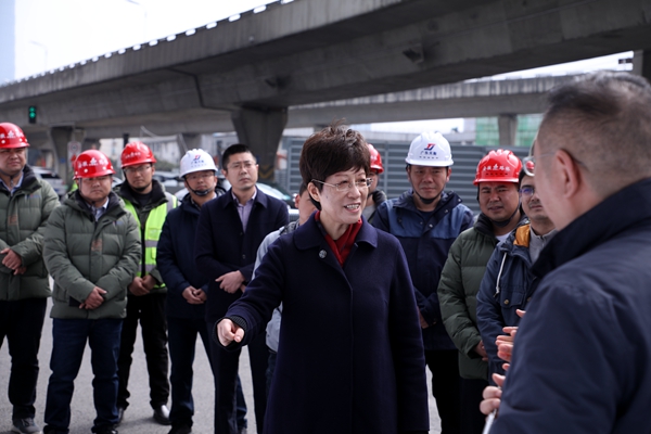 凌云來到施工現(xiàn)場,與參建人員一一握手寒暄并送上節(jié)日祝福。在聽取了項(xiàng)目概況、施工進(jìn)展、施工亮點(diǎn)和春節(jié)期間施工目標(biāo)及各項(xiàng)保障工作后,凌云對春節(jié)期間項(xiàng)目全體施工人員放棄與家人團(tuán)聚,依舊堅(jiān)守崗位致以崇高敬意,并對項(xiàng)目取得的各項(xiàng)成績給予充分肯定。她強(qiáng)調(diào),要搶抓春節(jié)期間施工優(yōu)勢,保持大干勢頭,加快施工進(jìn)度,保障施工安全,盡早還路與民。