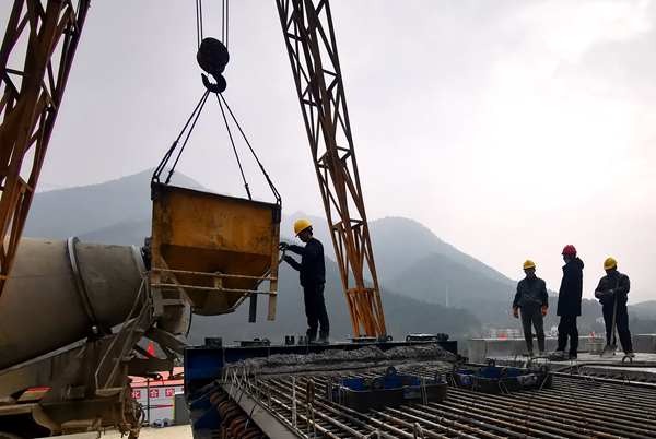 在全長8.18公里的施工線上,荊竹坑大橋、2#拌和站、2#預制梁場及鋼筋加工場等多個施工點同時多點作業(yè),多個工序同時推進。其中,荊竹坑大橋左線2#橋橋臺施工不間斷;2#拌和站春節(jié)期間共完成砼量320方;2#預制梁場施工人員全部就地過年,加班加點作業(yè),保證每日澆筑3-4片預制橋梁板,春節(jié)期間完成近30片梁板,為全線橋梁梁板架設奠定有力基礎。