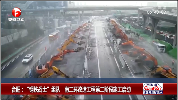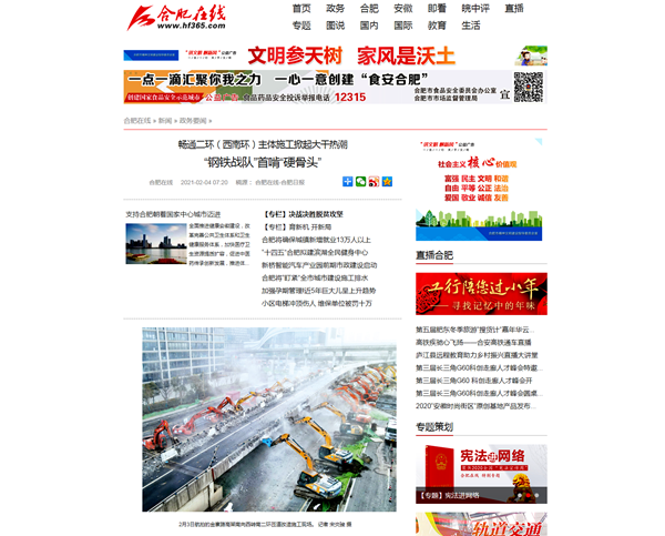 人民網(wǎng)【新春走基層】專欄報(bào)道了該項(xiàng)目大年三十工地不打烊,參建人員持續(xù)奮戰(zhàn)在施工一線。中國日報(bào)海外版《End of the road》、合肥日報(bào)《“鋼鐵戰(zhàn)隊(duì)”首啃“硬骨頭”》報(bào)道了公司第二次對老舊匝道橋拆除工作的場景。安徽衛(wèi)視超級新聞場等媒體以《“鋼鐵戰(zhàn)士”組隊(duì) 南二環(huán)改造工程第二階段施工啟動》報(bào)道了南二環(huán)改造工程順利進(jìn)入第二階段施工節(jié)點(diǎn)的訊息。學(xué)習(xí)強(qiáng)國合肥學(xué)習(xí)平臺、澎湃新聞以《合肥:暢通南二環(huán) 鉚足干勁 大干正酣》為題,合肥新聞聯(lián)播以《“步履不?!北惩?nbsp;建設(shè)按下“快進(jìn)鍵”》《過年堅(jiān)守南二環(huán) 來年道路早暢通》為題,報(bào)道了春節(jié)期間該項(xiàng)目施工現(xiàn)場干出的“加速度”。抖音等自媒體平臺以短視頻形式展示了數(shù)十臺機(jī)械同時(shí)作業(yè)的震撼場面,關(guān)注熱度超過3百萬,安徽路橋速度得到合肥市民的再次點(diǎn)贊。