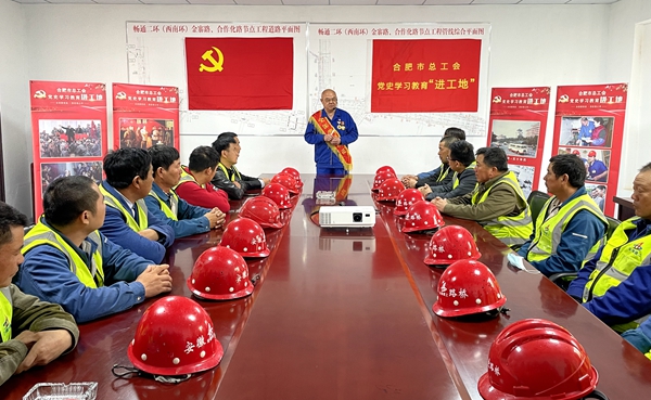 近日,由合肥市總工會組織開展的黨史學(xué)習教育“進工地”宣講活動來到暢通二環(huán)(西南環(huán))項目,全國勞動模范徐輝為一線建設(shè)者作主題宣講報告。