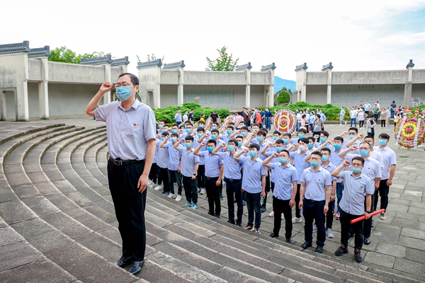 15日上午,團員青年們來到涇縣的皖南事變烈士陵園,向革命英烈敬獻花籃,并重溫入團誓詞,參觀了無名英雄烈士墓、主題廣場、主碑紀念廣場,追憶崢嶸歲月,緬懷革命先烈,近距離感受到偉大的新四軍精神。在云嶺新四軍軍部舊址紀念館,大家瞻仰當年新四軍戰(zhàn)士爭取民族獨立的歷史遺跡,“鐵軍”風范浮現眼前,進一步厚植了愛黨、愛國、愛社會主義的深刻情感。