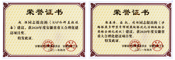 近年來,公司高度重視引導職工積極參與合理化建議,建立并不斷完善相應激勵措施,2017年以來,公司累計獲得47項安徽省重大合理化建議項目獎,在降低生產(chǎn)成本、提高生產(chǎn)效率和推動公司高質(zhì)量發(fā)展方面作出了顯著貢獻。