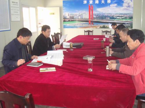 戴總一行深入施工一線,實地察看了大橋的建設(shè)情況,與現(xiàn)場技術(shù)人員和施工人員進(jìn)行了親切的溝通交流。隨后,戴總一行在項目部會議室召開了座談會,就淠望路大橋施工方案、施工工序進(jìn)行了詳細(xì)的剖析,并提出了具有建設(shè)性的指導(dǎo)意見。