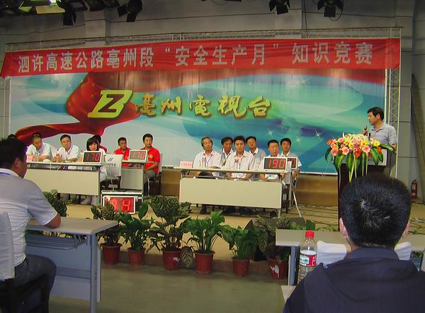 6月12日下午,在亳州市電視臺七樓演播廳舉辦了泗許高速亳州段“安全生產(chǎn)月”知識競賽,此次競賽由泗許高速亳州段建設辦舉辦,監(jiān)理單位和各施工單位共六支隊伍參加了比賽。亳州市質量安全監(jiān)督局副局長程權,泗許高速亳州段建設辦工程部部長蔡兵出席競賽并擔任競賽評委。