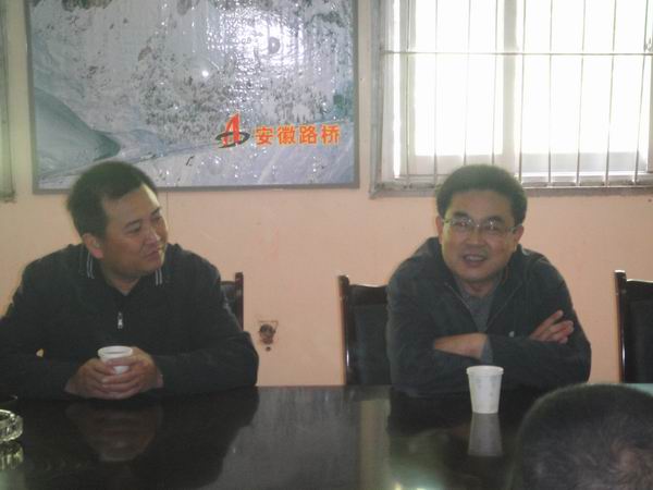 在項(xiàng)目部會議室,陳經(jīng)理首先向交通廳領(lǐng)導(dǎo)匯報援建工程施工進(jìn)展情況以及漳黃路02標(biāo)全體建設(shè)者克服各種不利因素,提升大干干勁等情況。交通廳及公路局領(lǐng)導(dǎo)對安徽路橋在四川援建工程中的表現(xiàn)表示滿意,并鼓勵項(xiàng)目部全體人員要再接再厲,樹起安徽筑路人的光輝風(fēng)采。