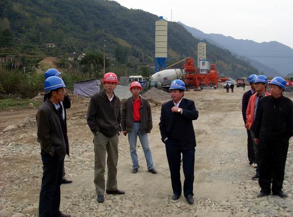 1021,省路橋公司副總經(jīng)理盛明宏、安全生產(chǎn)部經(jīng)理黃勁松一行到我部考察指導(dǎo)工作,并在項(xiàng)目經(jīng)理王遠(yuǎn)勝、項(xiàng)目副經(jīng)理陳智及項(xiàng)目總工羅志龍等人的陪同下深入我部施工一線,視察了一工區(qū)的混凝土拌和站建設(shè)情況及挖孔樁施工作業(yè)情況。