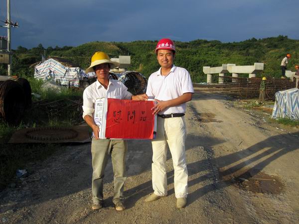 入夏以來(lái),黃祁高速公路建設(shè)沿線地區(qū)持續(xù)高溫,廣大項(xiàng)目員工冒著高溫酷暑始終堅(jiān)守在一線,為加快施工進(jìn)度而不懈努力。2010年7月18日下午,我部項(xiàng)目經(jīng)理黃華及項(xiàng)目部主要管理人員深入施工現(xiàn)場(chǎng),慰問廣大員工,檢查各工區(qū)施工隊(duì)伍防暑降溫工作的開展情況,并將防暑降溫用品發(fā)放到各工區(qū)施工隊(duì)。