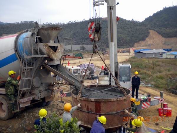 12時(shí)08分,在這個風(fēng)和日麗的午后,第一孔水下灌注樁樁基灌注工作正式開始。灌注過程中,我部遵照“嚴(yán)控質(zhì)量關(guān),嚴(yán)把安全關(guān)”的要求進(jìn)行施工,項(xiàng)目部技術(shù)員與安全員均到現(xiàn)場進(jìn)行了詳細(xì)的施工技術(shù)交底和安全技術(shù)交底。