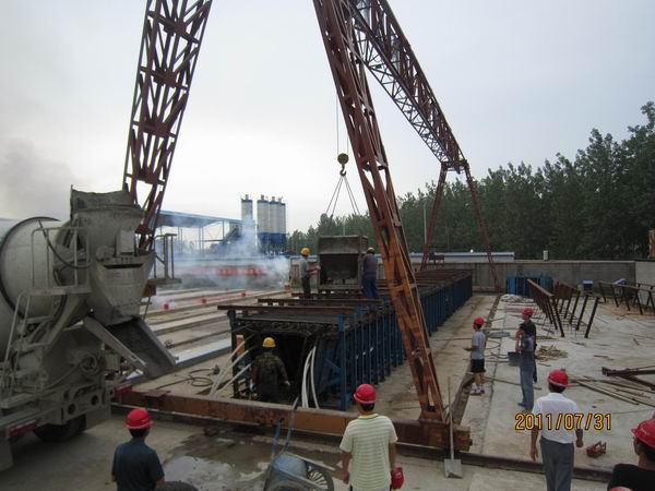 徐明11標(biāo)第一片箱梁預(yù)制成功 發(fā)布時間:2011年08月02日 來源:徐明11標(biāo) 發(fā)布人: 作者:李發(fā)林 瀏覽:3309次 8月1日凌晨3點,在項目部的精心組織和全體參建人員的共同努力下,徐明高速路11標(biāo)第一片箱梁預(yù)制成功,標(biāo)志著該項目部大規(guī)模預(yù)制箱梁的序幕已經(jīng)拉開。