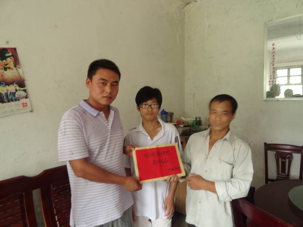 據(jù)了解,鄺土華同學(xué)今年以498分的成績被東華理工大學(xué)核工程與技術(shù)專業(yè)錄取,但昂貴的學(xué)費(fèi)對(duì)于這樣一個(gè)母親臥病在床、僅靠一畝田地維持生計(jì)的貧困家庭來說,是不小的負(fù)擔(dān)。我部經(jīng)理羅權(quán)在了解相關(guān)情況后,積極組織參建員工捐款,并隨同全南縣交通局局長童文平、J2高駐辦高級(jí)駐地張金杰親自前往家中慰問。