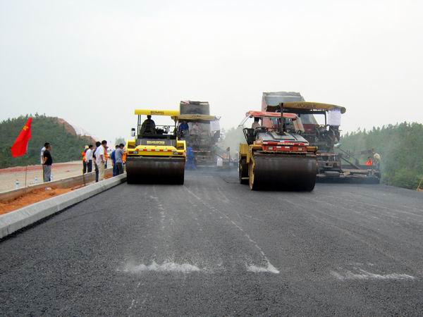 為了確保此次試驗段的順利攤鋪,項目部研究制定了詳細的施工方案,并提前召開了專項方案技術交底會,對施工工藝流程、施工組織安排及注意事項等進行了詳細的交底。28日早上,在項目領導的精心安排和組織下,我部工程技術人員和作業(yè)人員對瀝青試驗段攤鋪現(xiàn)場和瀝青拌和站進行準備工作和設備最后檢查。上午11時,伴隨著陣陣鞭炮聲,此次瀝青試驗段按照預先計劃順利攤鋪,現(xiàn)場機械在指揮人員的引導下有條不紊的作業(yè)。最終經(jīng)過我部廣大施工作業(yè)人員的齊心努力,下午18時順利完成此次ATB-25瀝青碎石上基層試驗段的攤鋪。