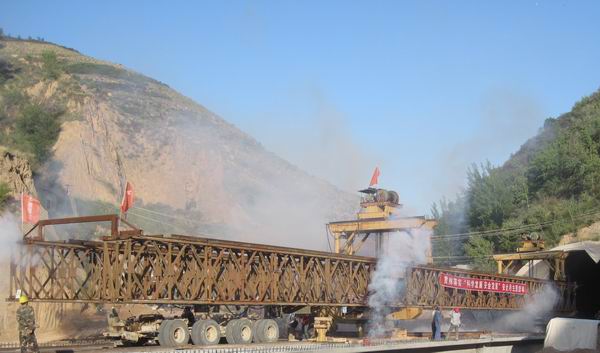 延吳高速LJ-22標(biāo)施工環(huán)境極其復(fù)雜,因山地條件的限制,該項(xiàng)目利用三段路基建了三個(gè)預(yù)制場(chǎng),但仍解決不了存梁的實(shí)際困難。在此條件下,要滿足施工要求,必須采取預(yù)制安裝同時(shí)作業(yè),并確保每天至少4片梁板的順利安裝。該項(xiàng)目在這一工序銜接上精心組織,合理安排,各施工隊(duì)通力協(xié)作,確保了梁板預(yù)制和安裝的有序進(jìn)行。