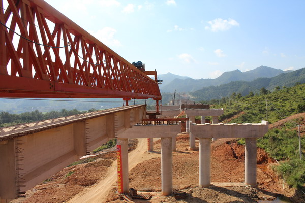 昌寧高速C5標(biāo)完成龍坊高架第一片40米T梁架設(shè) 發(fā)布時(shí)間:2014年09月18日 來(lái)源:昌寧高速C5標(biāo) 發(fā)布人: 作者:王振堂 瀏覽:2795次 9月18日上午9時(shí)18分,昌寧高速公路C5標(biāo)龍坊高架第一片40米T梁順利架設(shè)成功,標(biāo)志著作為全線控制性工程的龍坊高架橋進(jìn)入了上部施工階段,極大地提振了項(xiàng)目部全體員工和參建隊(duì)伍的戰(zhàn)斗精神。